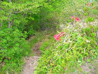 二度上峠からの標高差の少ない稜線で ヤマツツジとトウゴクミツバツツジとレンゲツツジと