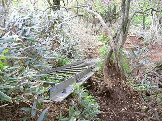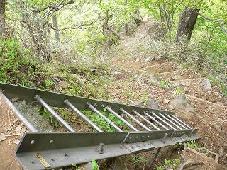 _____(最初のハシゴ)______________(ヤセた登山道)