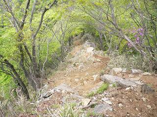 ____(ザレ気味の登山道)______________(ヤセた登山道)