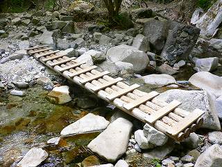 杉林を過ぎた先で 丸太橋と鉄製の橋を4〜5回渡ります。