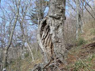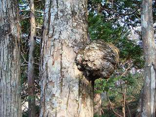 ____(血管腫のようなコブ)__________(倒木の割れ目から生えた木)