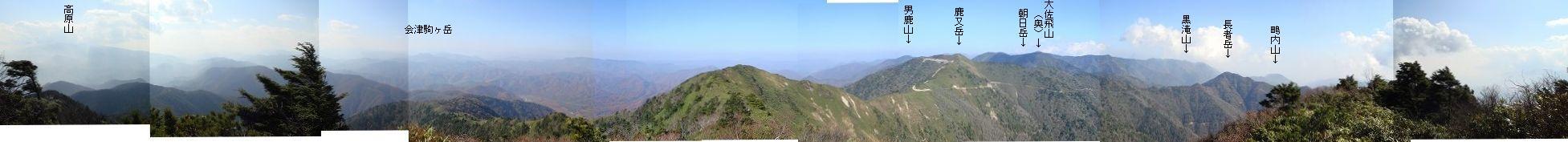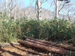 その上にある笹が多くなった所で振り返ると 落葉した梢の奥に高原山が見えました。