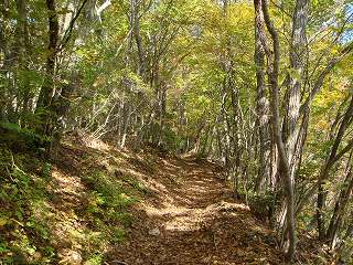 山腹をなだらかに登って行くと、突然 直登の急斜面が現れますが、この急登はきついので