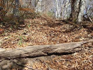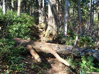 ____(少し広くなった所)____________(登山道に横たわる倒木)