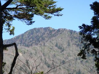 _(林床に密生するアスナロの若木)_________(ここから見えた山頂)