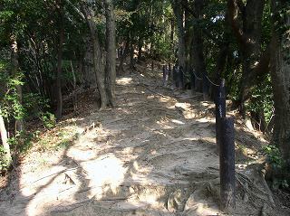 ___(木の根が這う登山道)______________(階段の登山道)