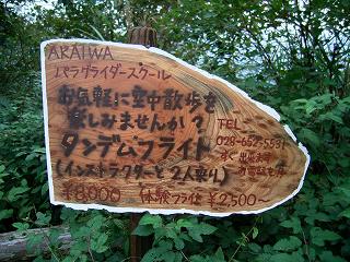 山頂にあるベンチの前に パラグライダースクールの案内がありました。