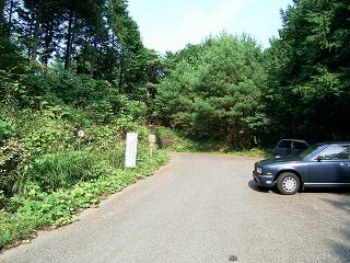 __(古賀志山南登山道の駐車場)______(左にあるのが車両進入禁止の注意看板)