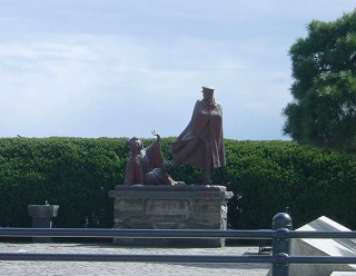 _(寛一お宮の像、今ならDVですね)_______(南国的な雰囲気の熱海の海岸)