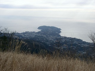 山頂は標高の割りに眺めが良くて、北東に 大観山と白銀山の稜線、南東に延びる真鶴半島