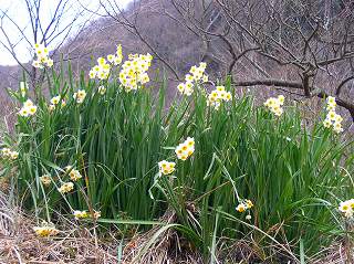 __(まばらに花を付けた梅の木)________(散策路に咲いてたスイセン)