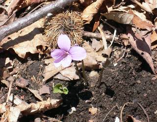 ___(ここに咲いてたスミレ)_________(雑木林の中のなだらかな登山道)