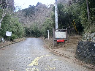 ___(登山道口にある案内板)____________(登山口付近の階段)
