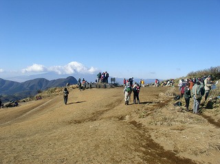 (前方の人だかりが明星ヶ岳の山頂)