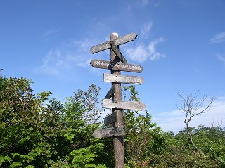 山頂には 4つの祠と色々な方位を示した標識があって、北から時計回りに 袈裟丸山・