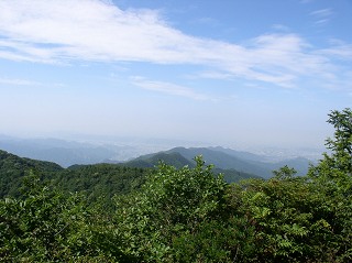 皇海山・奥白根山・男体山・根元山・熊鷹山が見えて、南には 桐生市街の左に行道山が