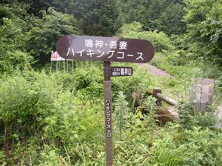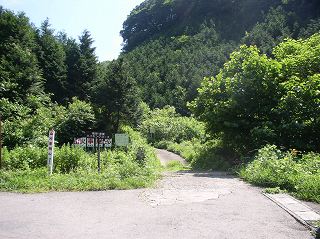 駒形登山口からの簡易舗装の林道は軽トラ以外入ることが出来ず、7分歩いて終点に着くと