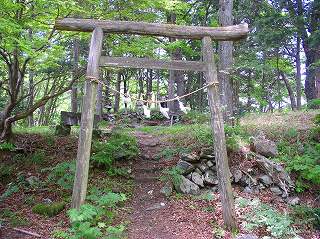 _(山頂から西に下りた所にある祠)________(この分岐から右下に下りる)
