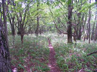 十二山神社から5分歩いた所で氷室山の分岐を見送って、十二山を巻く 笹原の中の道を20分