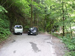 清風園から幅の狭い道を走って行くと ヘアピンカーブの手前に20台ほどの駐車場があって、