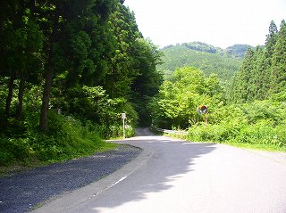ヒノキ林の中を20分下りて石鴨林道に出たら そこから沢に沿った林道を50分歩いた所に
