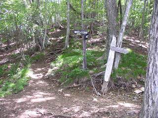 山頂から東に10分下りた所で十字路からの道と合わせて、さらに5分下りた所にある十二山