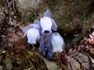 ____(三角点と山頂の標識)_________(山頂付近で見たギンリョウソウ)