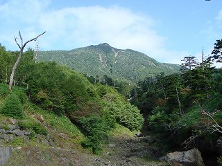 ___(林道から見た女峰山)__________(橋の左上に見えた大真名子山)