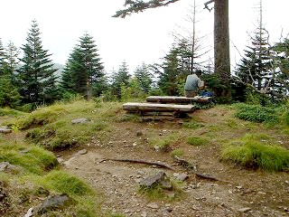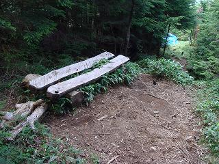馬立から20分登った所にある丸太を割ったベンチの所で モノレールの索道と別れます。