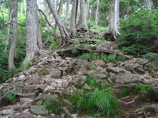 簡単なガレ場ですが 傾斜がきついので落石に注意しながら登りました。