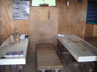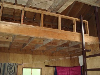 _(避難小屋の中にあるテーブル)________(一部が2階建てになった寝床)