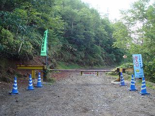 _(志津小屋の分岐から奥の林道)___________(林道にあるゲート)