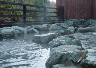 岩造りの露天風呂は開放感があって 目の前を流れる川は紅葉が色付き始めていました。