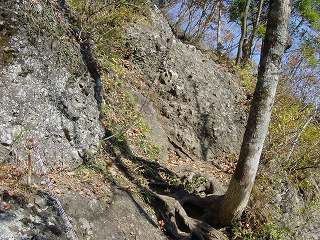 __(ワイヤーが張られた岩場)_________(稜線近くのクサリ場)
