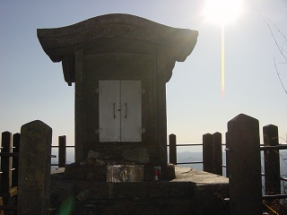 2つのピークに分かれた山頂は、西のピークにコンクリート製の祠があって その後ろが