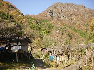 _(大円地の集落、後ろが男体山)___________(分岐にある看板)