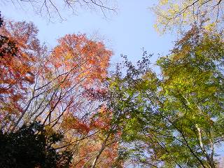 杉林を抜けて広葉樹林に入ると 頭上にキレイな紅葉がありました。