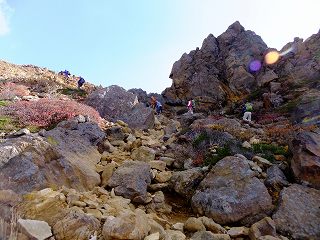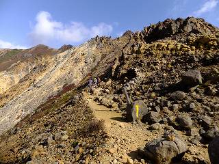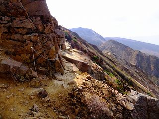 _____(ガレ気味の道)____________(朝日岳西肩、奥が朝日岳)