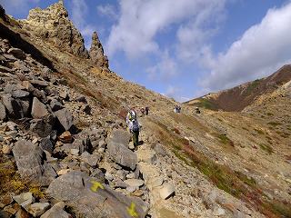 ___(岩が散乱する登山道)_____________(長いクサリ場)