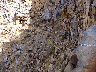 傾斜のきつい岩場を過ぎたら、今度は トラバースのクサリ場があります。