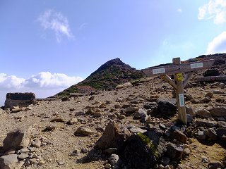 ______(山頂の標識)____________(朝日岳から見た茶臼岳)