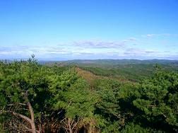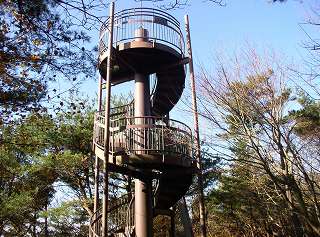 山頂は木に囲まれていますが 螺旋階段の展望台に登ると360度の景色を眺められます。