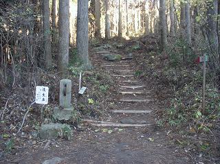 駐車場から杉林に入ると 二の鳥居の登山道と合わせて、ここで 登山道の脇にあった後生車