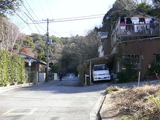 (正面の奥が瑞線寺で、右に曲がると登山口)_______(天園の登山口)