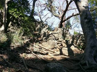 なだらかな起伏が続く稜線の登山道を30分歩いた所に 関東百名山の本に出ていた岩場が