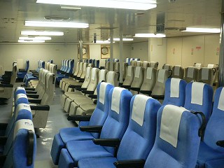 ___(岡田港の かめりあ丸)_________(快適だっ 2等のリクライニング席)