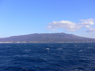 _(大島に着いた高速ジェット船)_________(帰路の船上から見た大島)