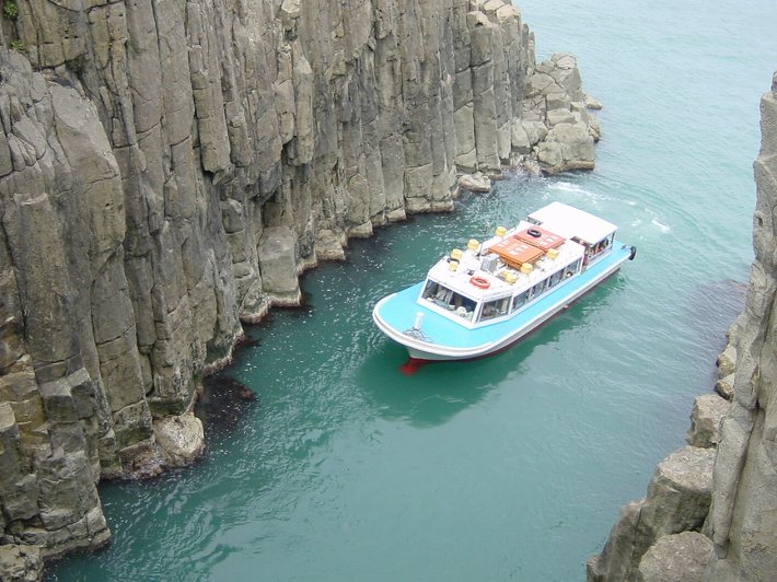 (柱状節理の断崖絶壁)