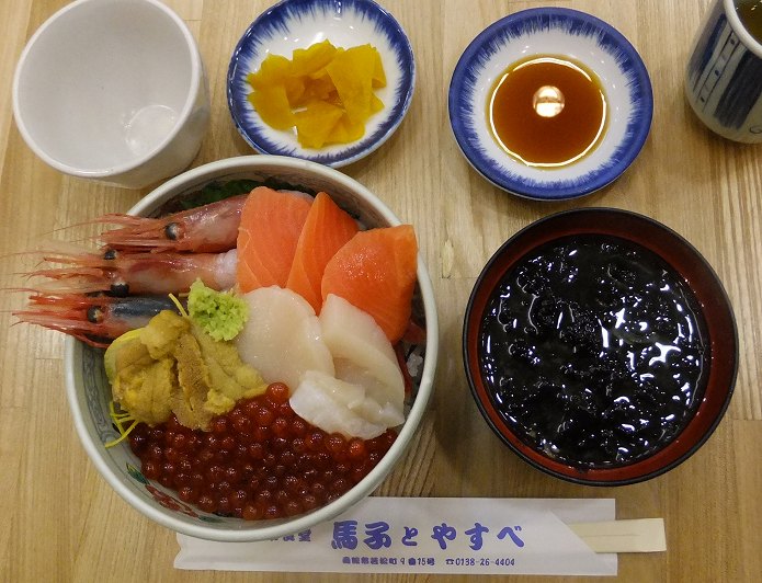 ![]() ____________(市場) ![]() __________(青果野菜コーナー) ![]() ___________(海産物コーナー) ![]() ___________(カニがいっぱい) ![]() ___________(生きてます) ![]() ___________(どんぶり横丁市場) ![]() __________(両側に並ぶ食堂) ![]() _____(見るからに美味しそうな食品サンプル) 横丁内にある馬子とやすべで食べました。 ![]() ___________(馬子とやすべ) ![]() _________(沢山の芸能人のサイン) 朝市五色丼は甘エビ・ホタテ・生うに・自家製イクラ・紅サーモン の5種類が入った海鮮丼で 美味しかったー。 ![]() ___________( |