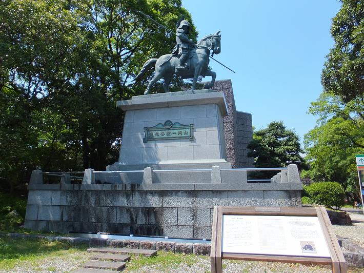 入口に 土佐藩主山内一豊が馬に乗った銅像があります。
